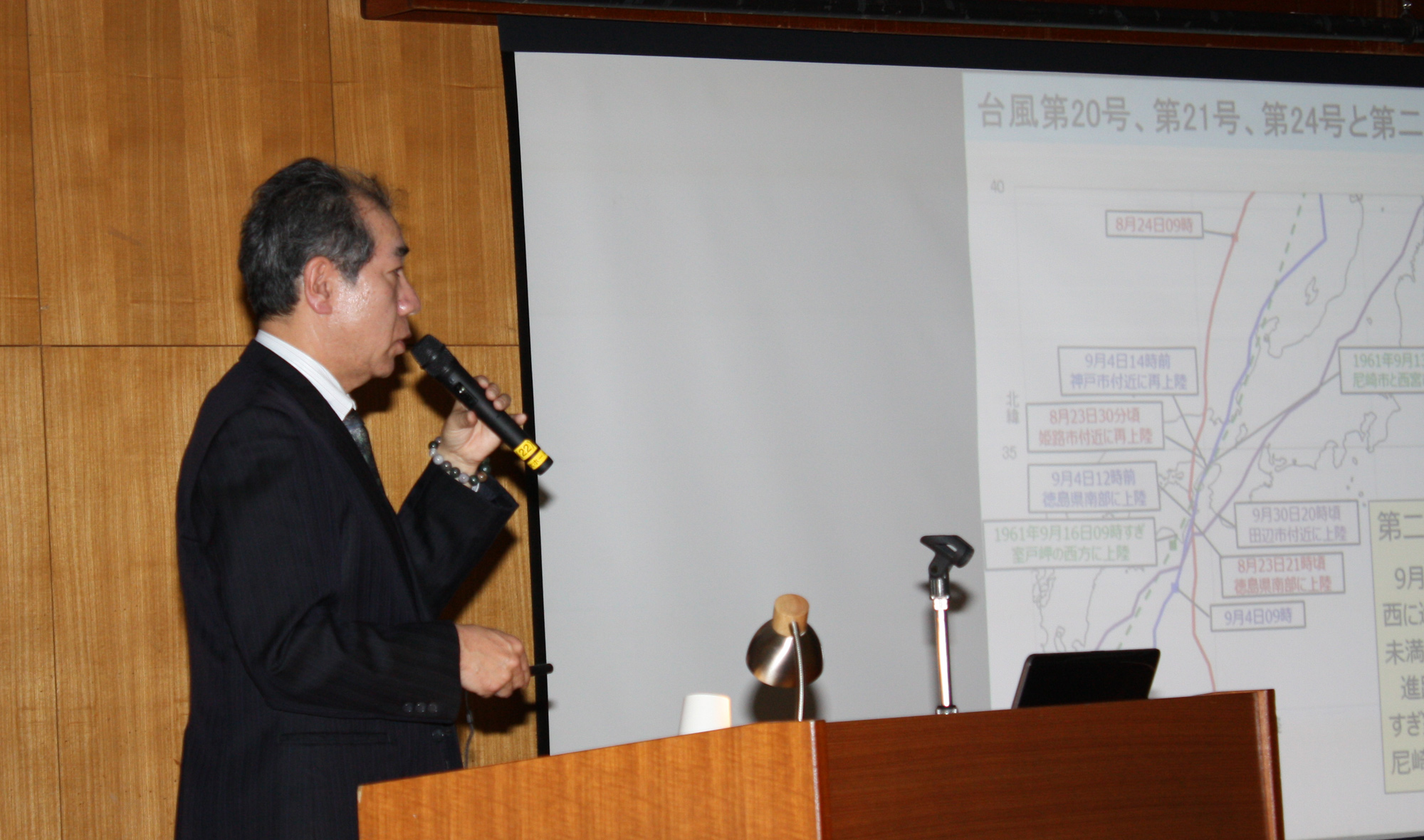第2部は、神戸地方気象台の防災気象官 赤松 光夫 氏をお招きし、「近年の気象災害と防災気象情報について」と題して、近年多発している大雨による災害や防災気象情報の役割について御講演いただきました